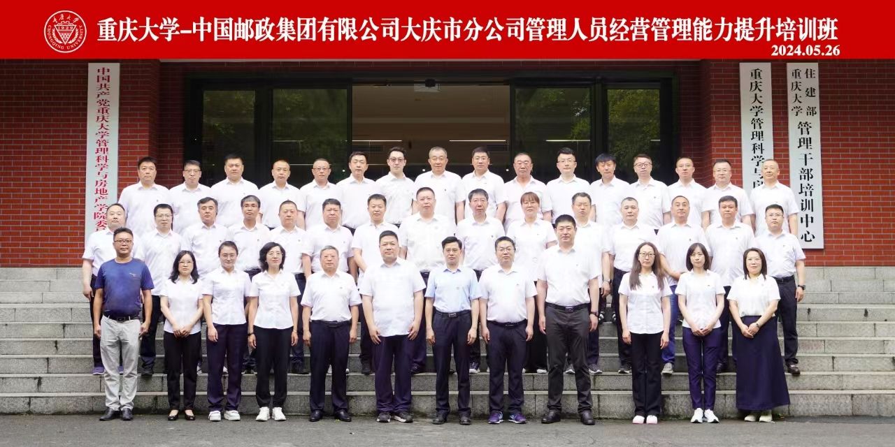 2024年5月26日,上午8点30分到9点,“中国邮政集团有限公司大庆市分公司管理人员经营管理能力提升培训班”开班仪式在重庆大学B区管理科学与房地产学院(简称管科学院)顺利举行。本次开班仪式由管科学院培训办公室孙宇航老师主持,中国邮政集团有限公司大庆市分公司本部纪委书记、副总经理闫亚忠、管科学院副院长向鹏成、管科学院培训办主任何凤麟出席了开班仪式,41位学员参加了此次培训。